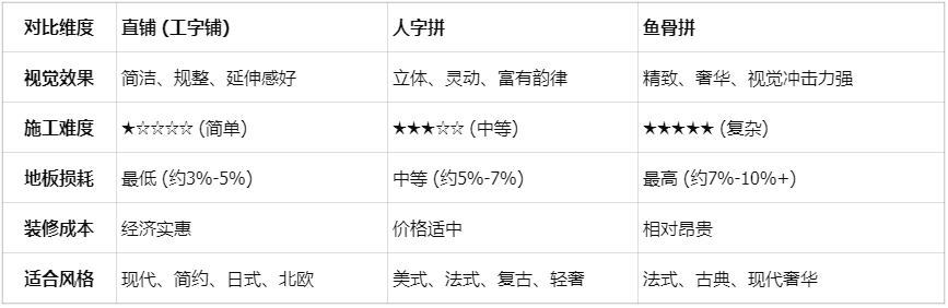 一张图看懂:直铺、人字拼、鱼骨拼大PK!